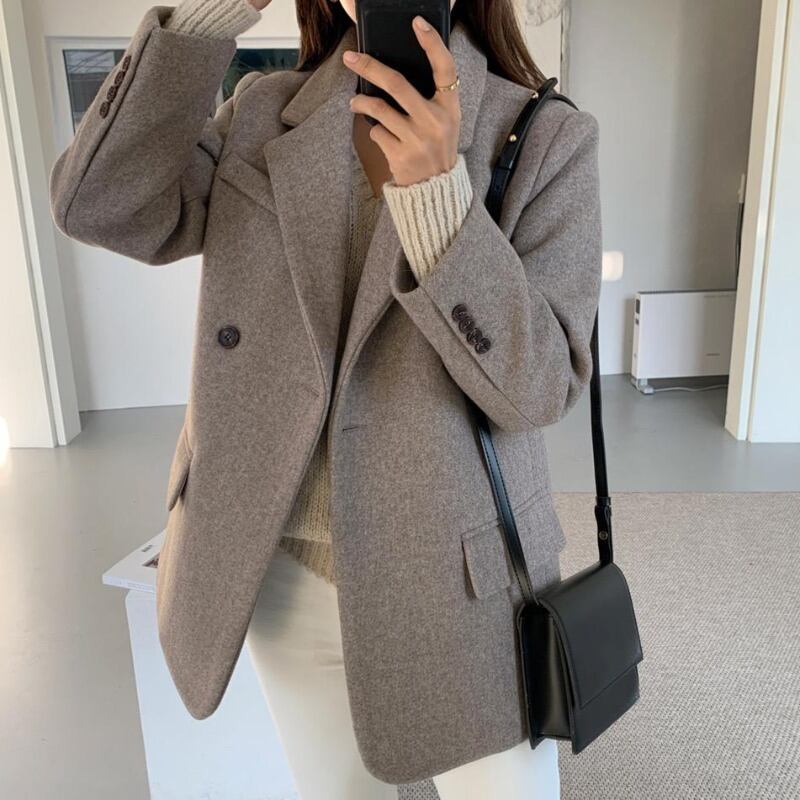 オータムウィンタースタンダードスタイルブレストルーズジャケット レディース レトロ 秋物 冬物 韓国婦人22412350722