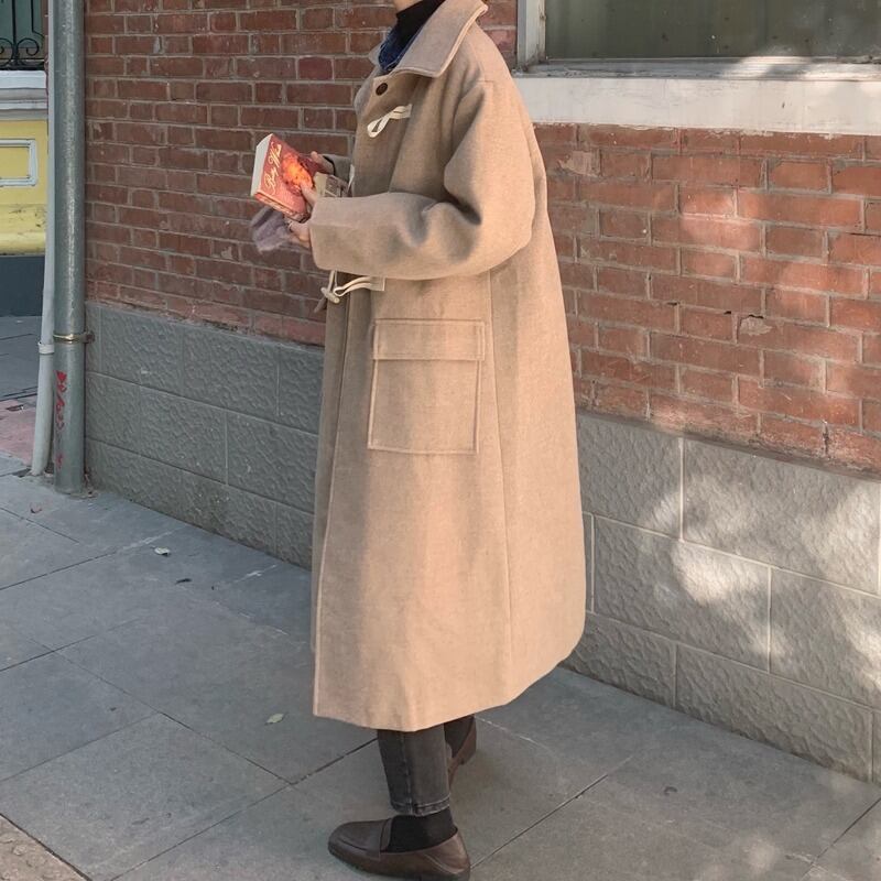 オータムウィンタースタンダードバックル薄手ルーズロングコート レディース レトロ 秋物 冬物 韓国婦人5047897405