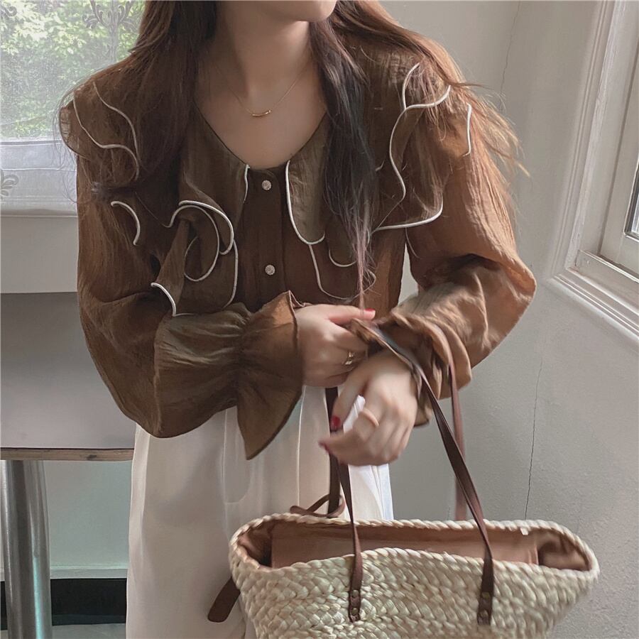 オータムスタンダードスタイルカラールーズスリーブシャツ レッド レトロ 秋物 韓国婦人28174818711