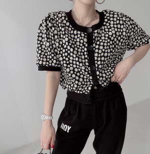 ショートブラウス サマースタイルラウンドネックフローラルカーディガンジャケット 夏物 花柄 Oネック 韓国婦人18876587557