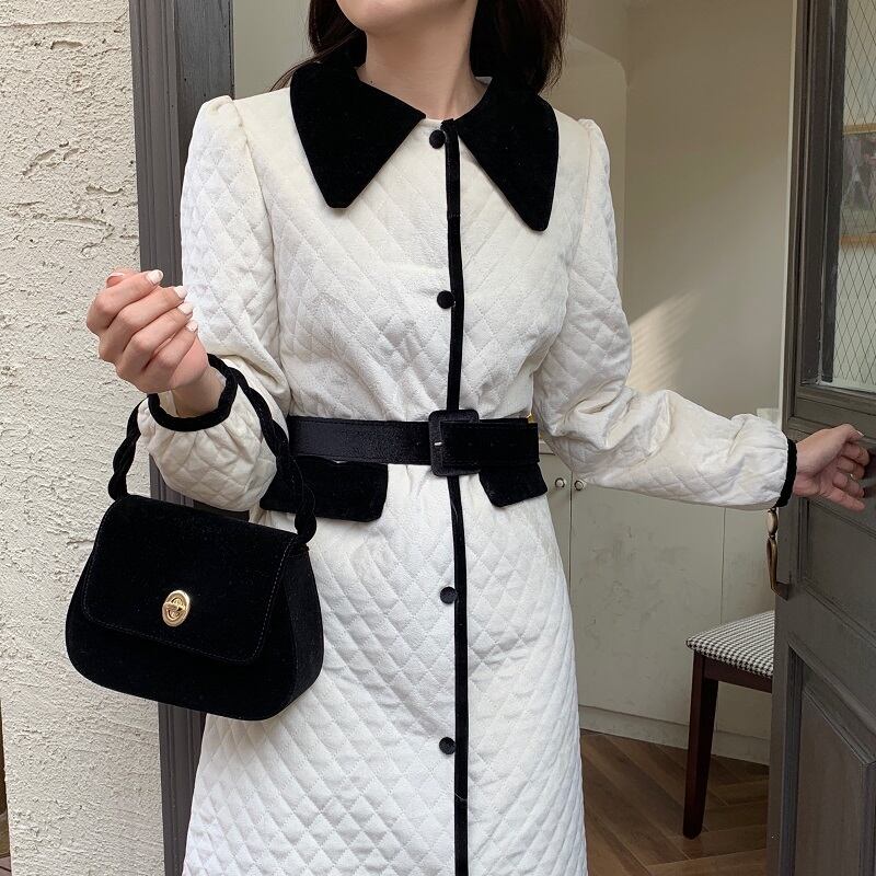 ウィンタースタンダードスタイルカラーベルベットベルト ジャケット コットン レトロ 冬物 ハーネス 韓国婦人19673480711
