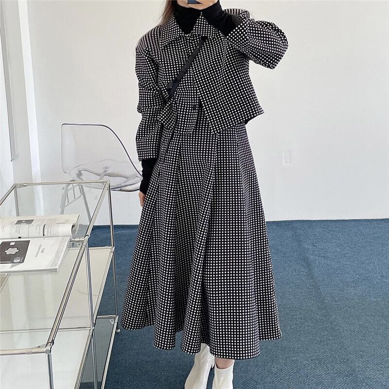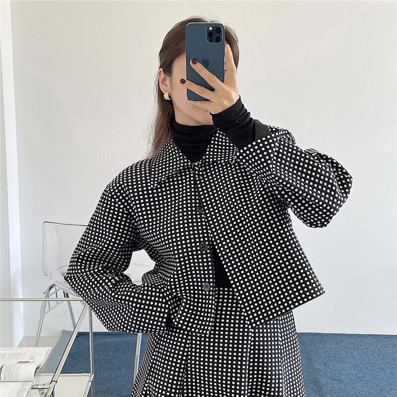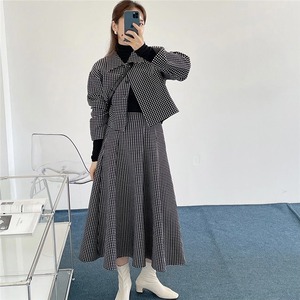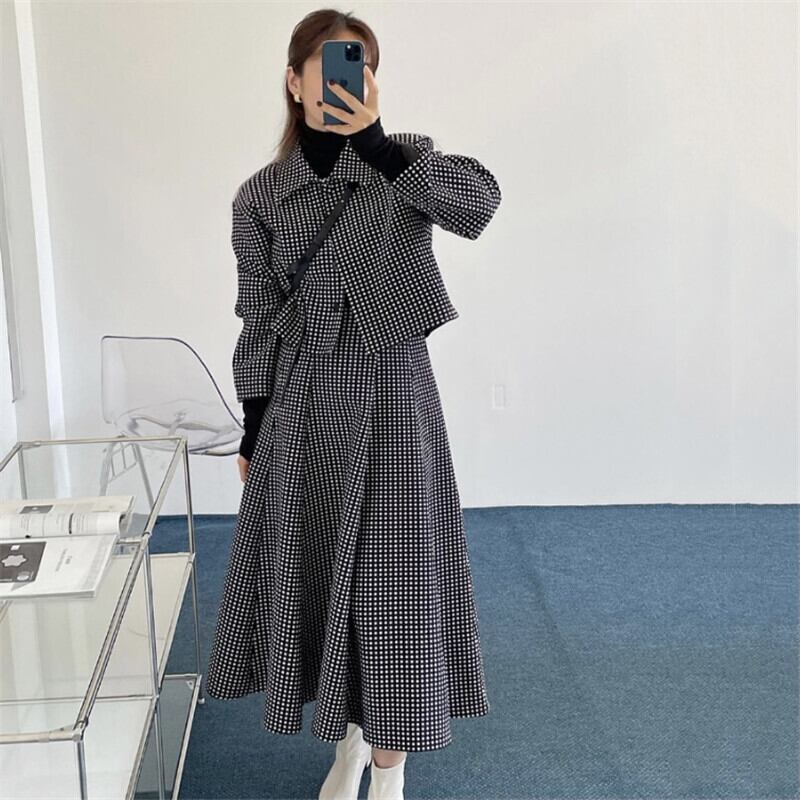 オータムスタンダードショートジャケット ハイウェストAラインスカート レトロ 秋物 韓国婦人6220416677