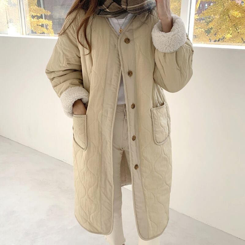 ウィンタースタンダードルーズジャケット ロング コットン レトロ 冬物 ステッチ 韓国婦人17357079776