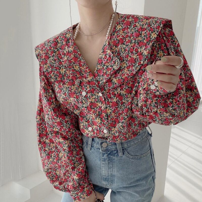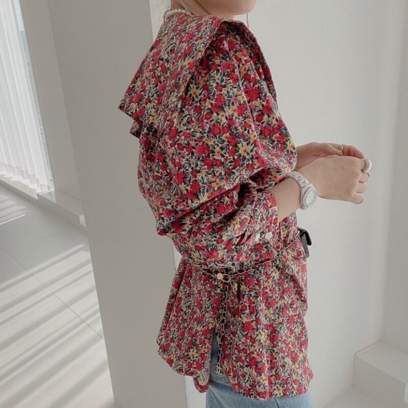 オータムスタンダードフローラルダブルブレストシャツ トップス レディース ロング レトロ 秋物 花柄 韓国婦人71100269364