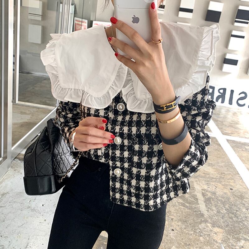 オータムウィンタースタンダードカラースタイルツィードショートコート ジャケット レディース レトロ 秋物 冬物 韓国婦人46960785829