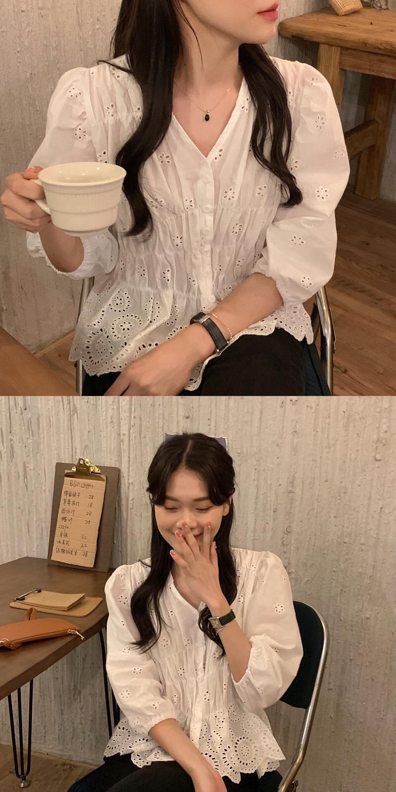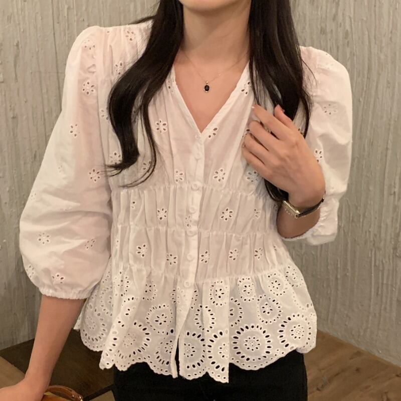サマーVネックウェストホワイトシャツ 夏物 韓国婦人52178827199