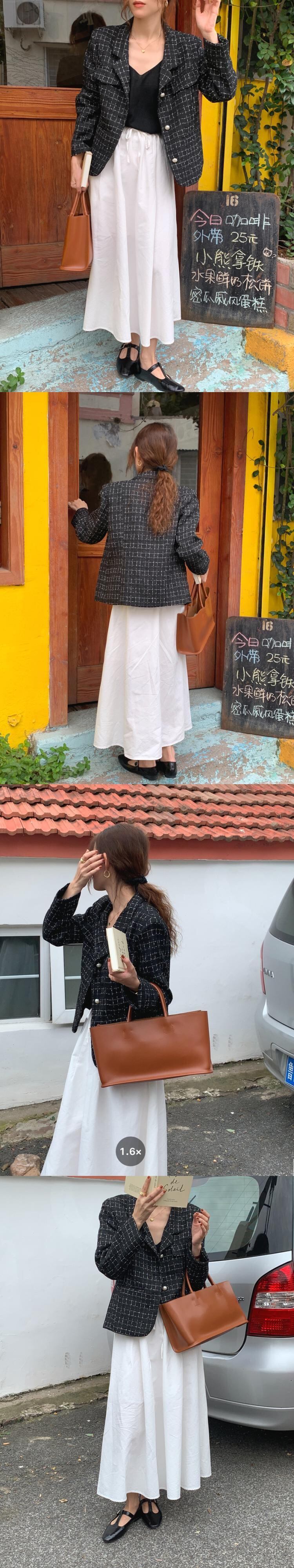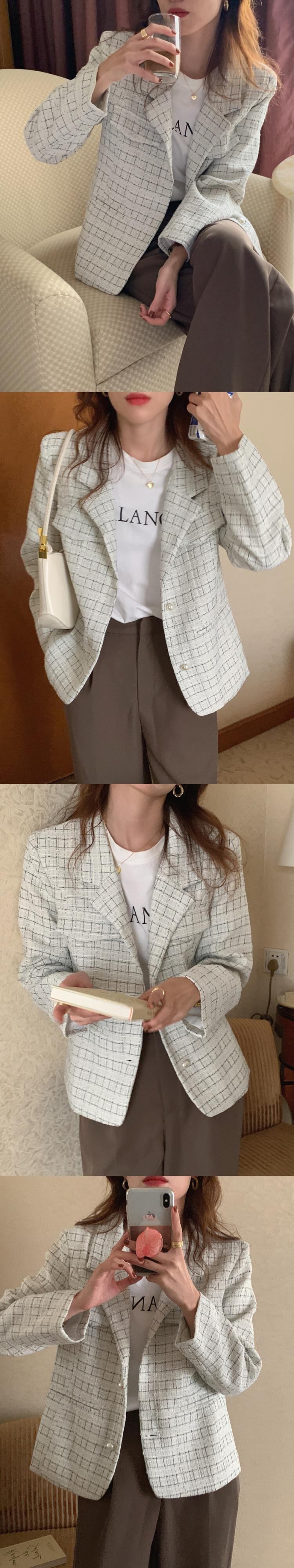 オータムウィンター薄手ショート格子柄ツィードジャケット レディース 秋物 冬物 韓国婦人591578608