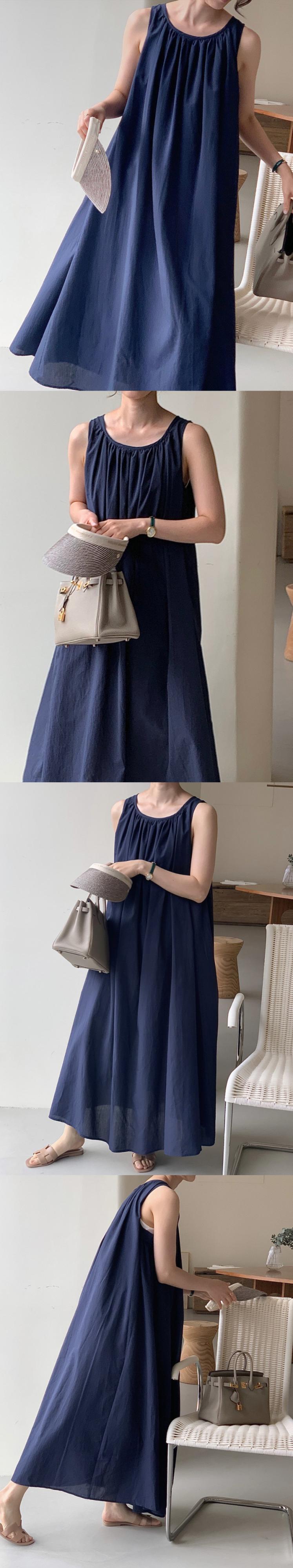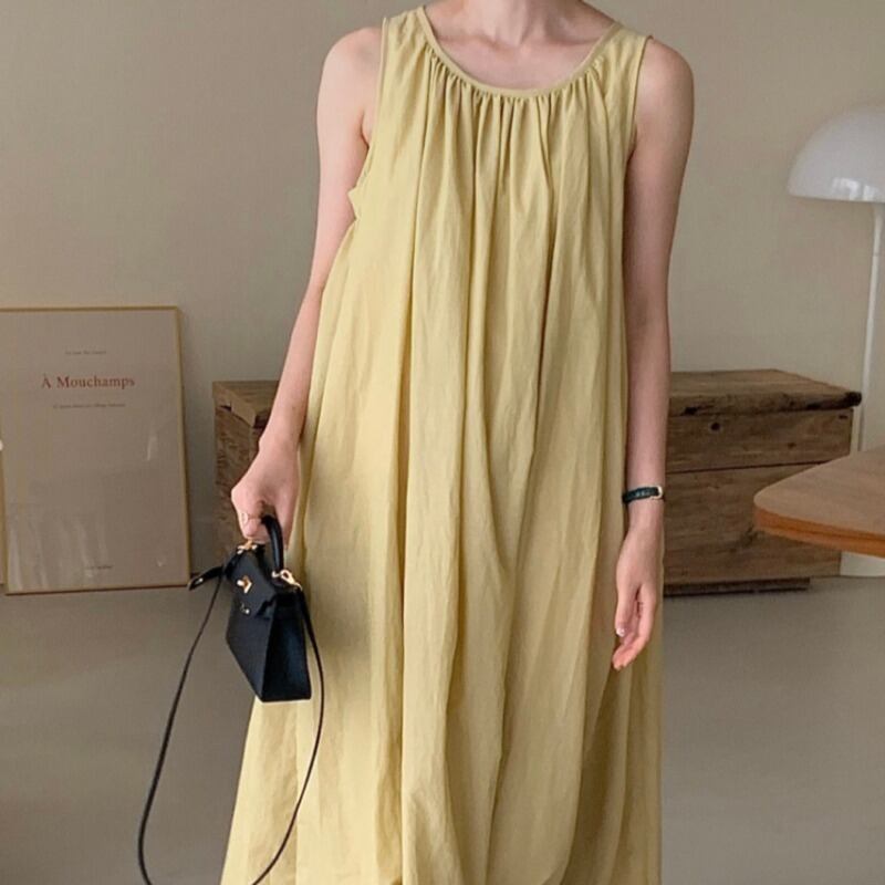 サマーラウンドネックルーズロングドレス レディース 夏物 Oネック 韓国婦人59846561582