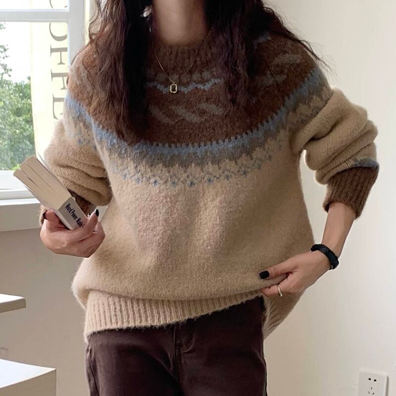 ウィンタースタンダードルーズスタイルジャカードセーター レディース レトロ 冬物 韓国婦人61238179958