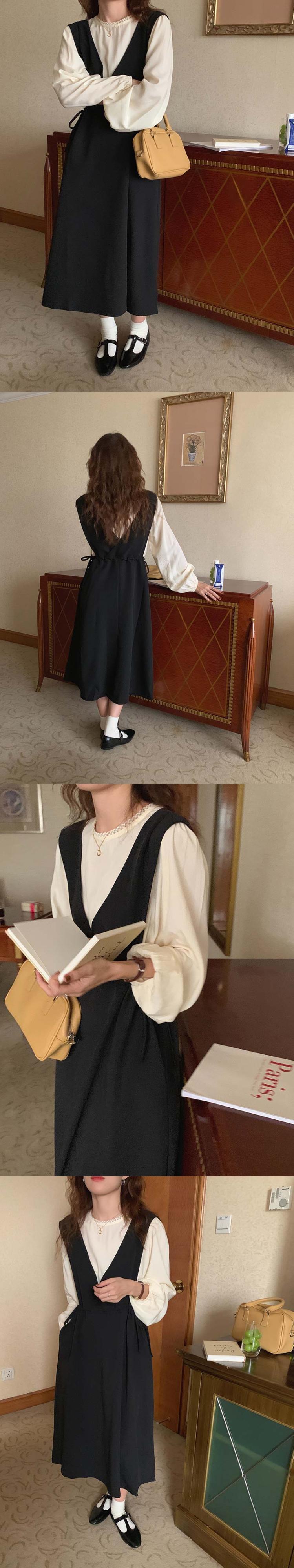 オータムレースラウンドネックシャツ ギャザーVネックスカート 秋物 Oネック 韓国婦人42423479307