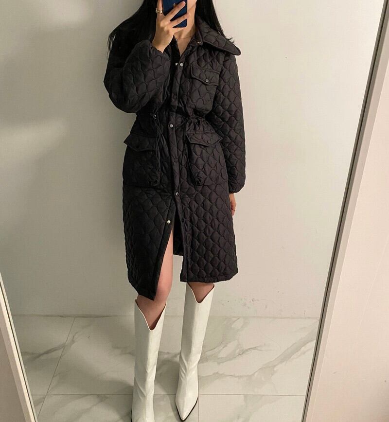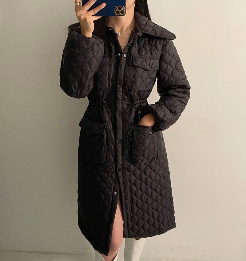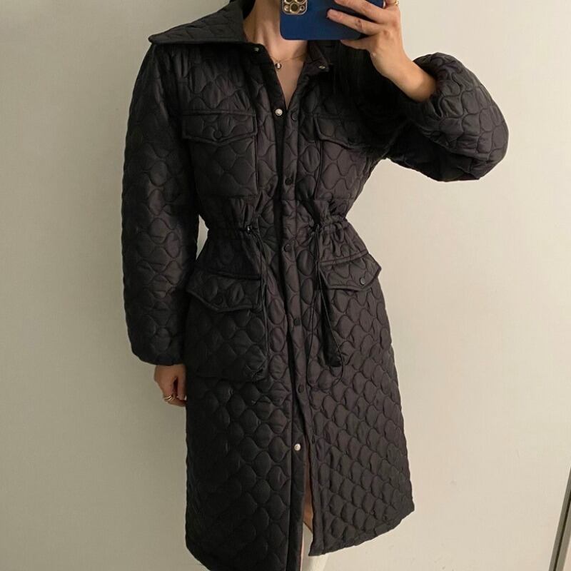 ウィンターギャザーウェストスリムロングジャケット レディース コットン 冬物 韓国婦人9332136116