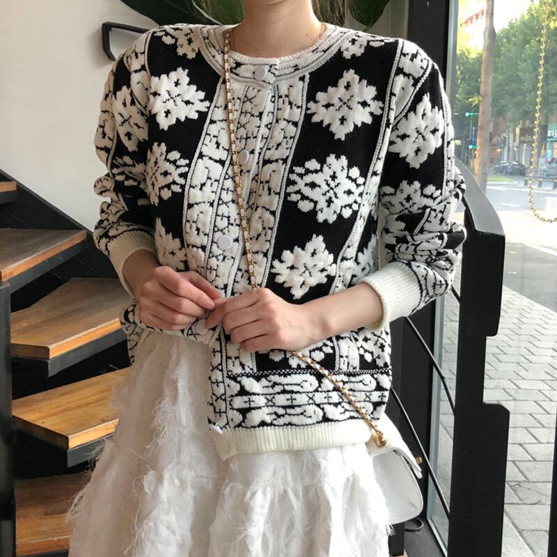 オータムウィンタースタンダード刺繍ラウンドネック長袖スリーブニットカーディガンセーター ジャケット レディース ロング レトロ 秋物 冬物 Oネック フラワーデザイン 韓国婦人50445568068