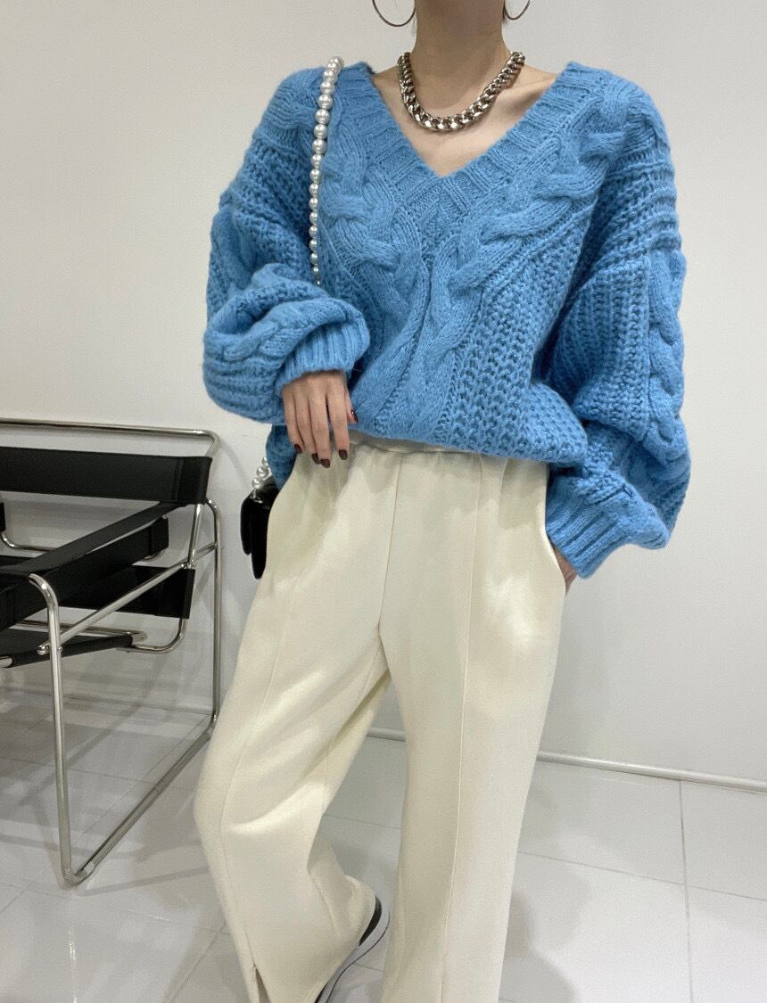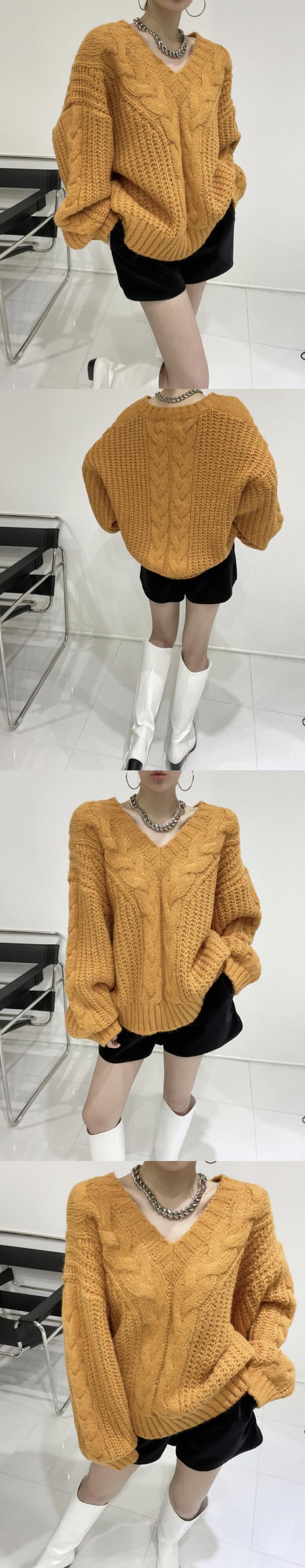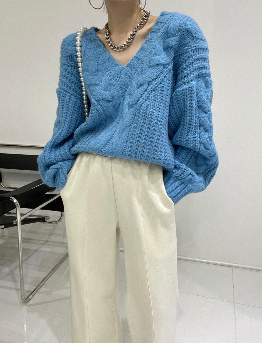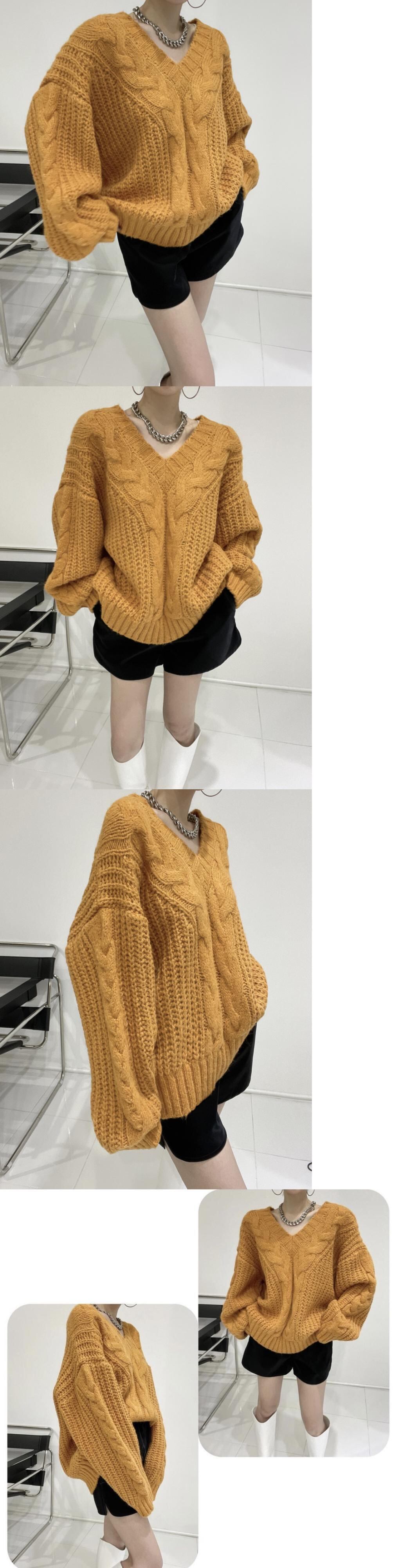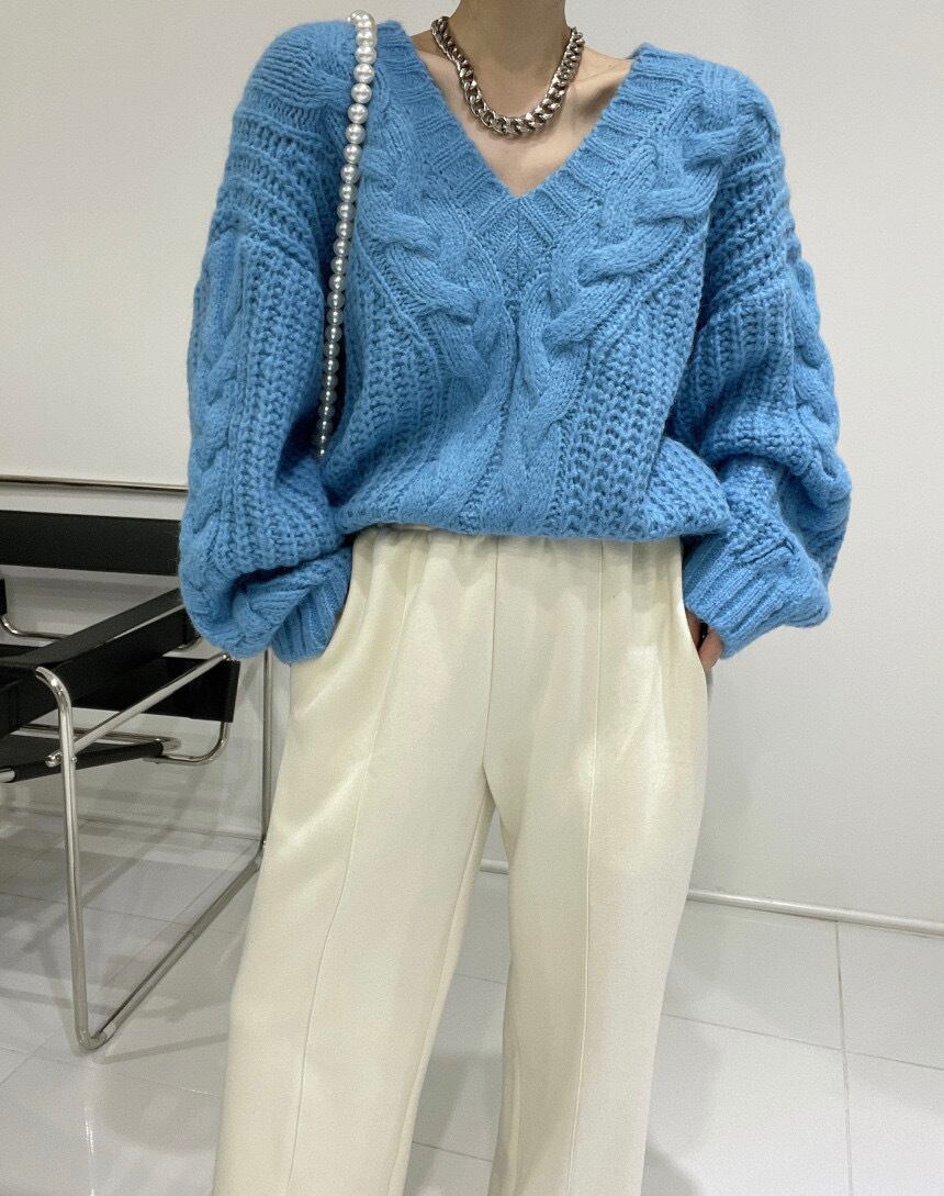 オータムウィンターVネックルーズプルオーバー ニットセーター レディース 秋物 冬物 韓国婦人74342093730