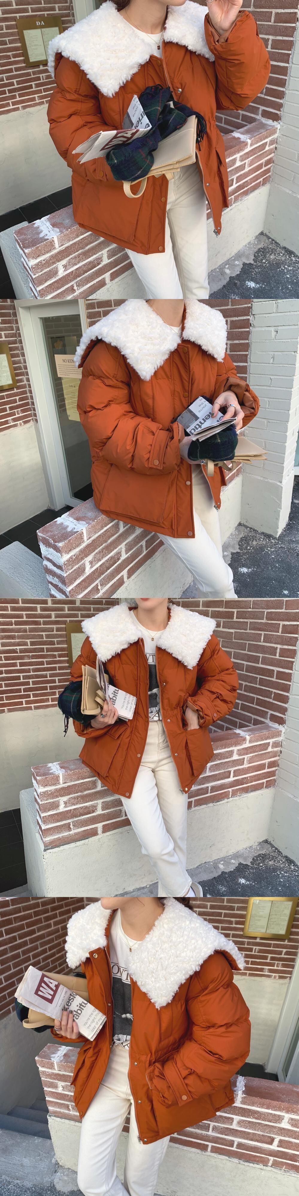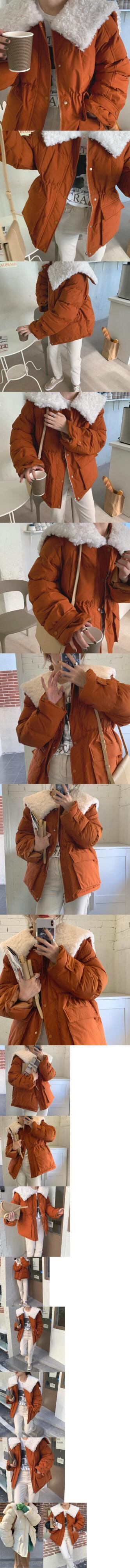 ウィンターウェストポケットショートファーカラージャケット コットン 冬物 韓国婦人37182545392