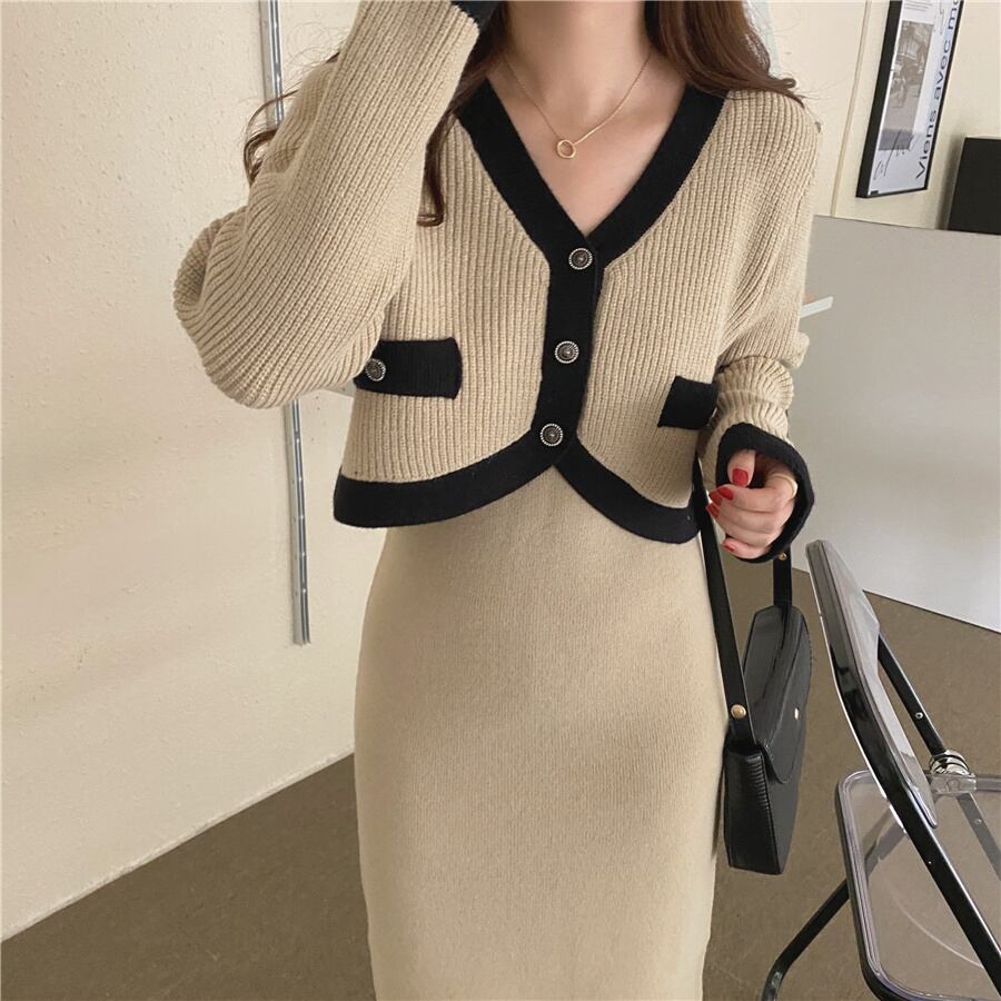 オータムウィンターカラーニットセーター カーディガンジャケット ドレス レディース 秋物 冬物 韓国婦人85508662093