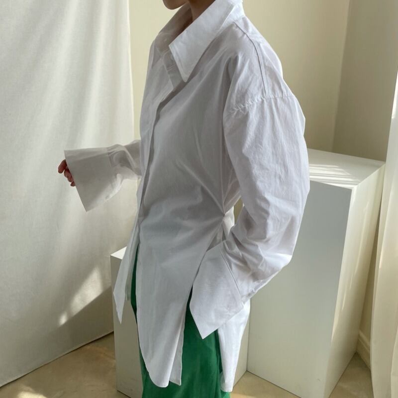 オータムルーズウェストベルト シャツ トップス レディース 秋物 ハーネス 韓国婦人94759119088