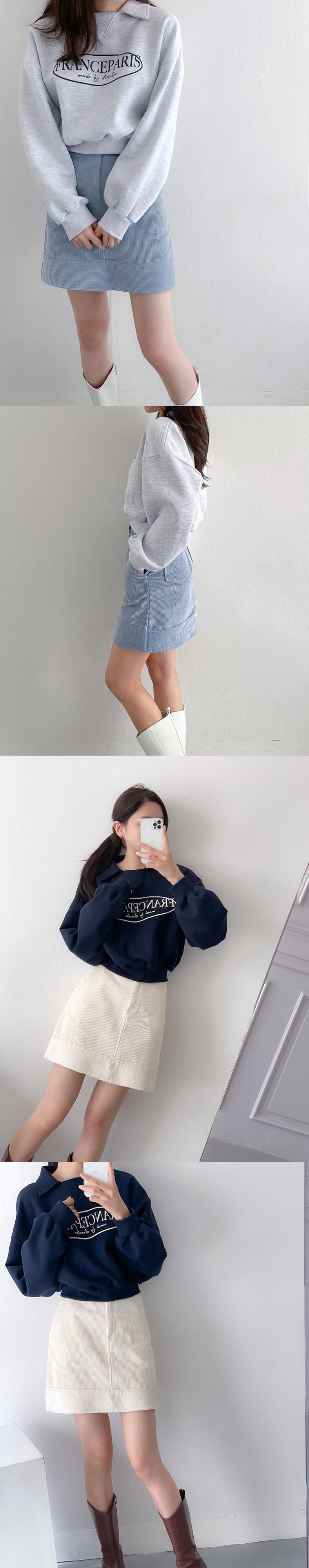色:オフホワイトスカートS,オフホワイトスカートM,緑の厚いTシャツ,グレーの厚手のコットンT,ネイビースウェットシャツ