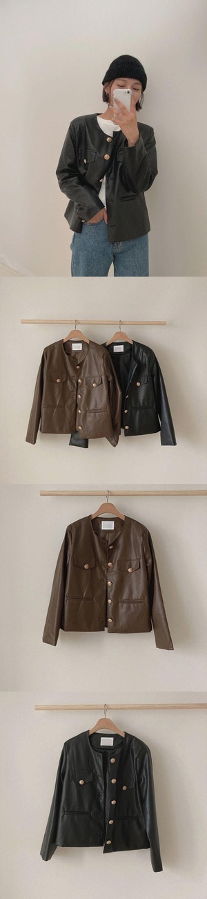 オータムウィンターラウンドネックカジュアルルーズレザージャケット 秋物 冬物 Oネック 韓国婦人33727055665