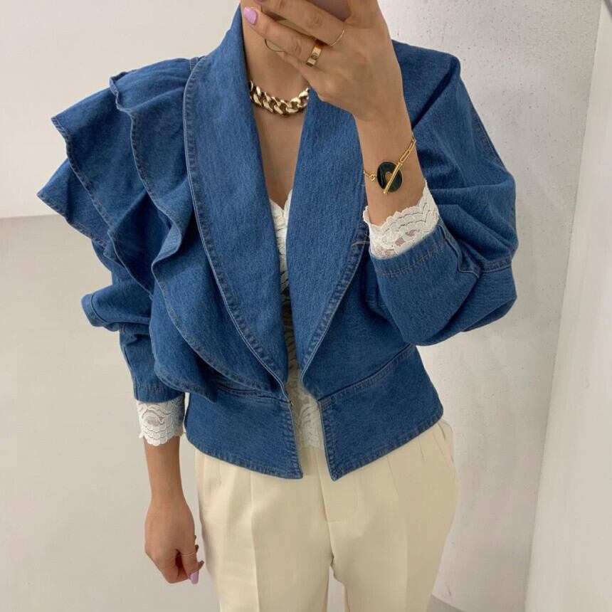 オータムスタンダードスタイルラッフルウェストショートジャケット レトロ 秋物 韓国婦人52720956795