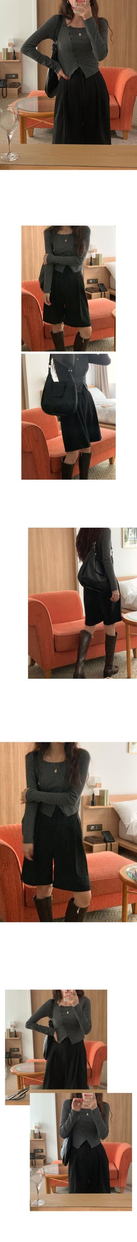 オータムカラーボタンスリムショートニットシャツ レディース ロング 秋物 スクウェア 韓国婦人47268542770