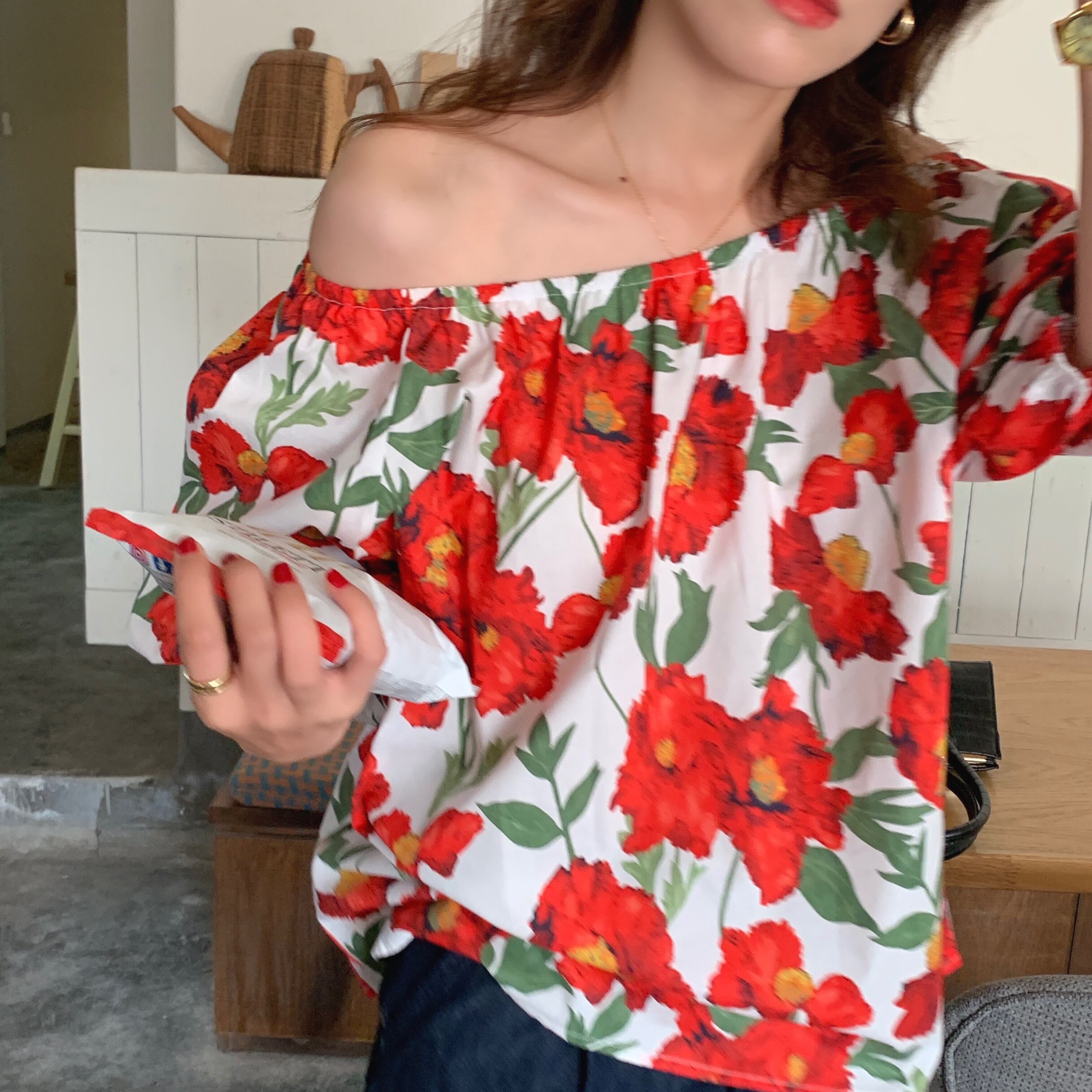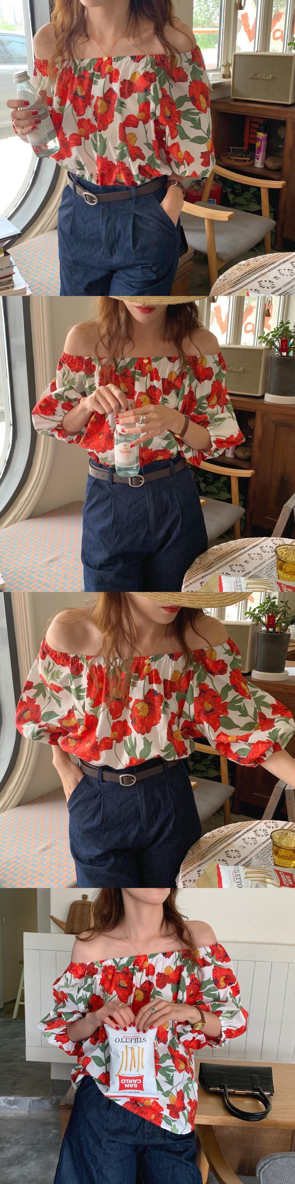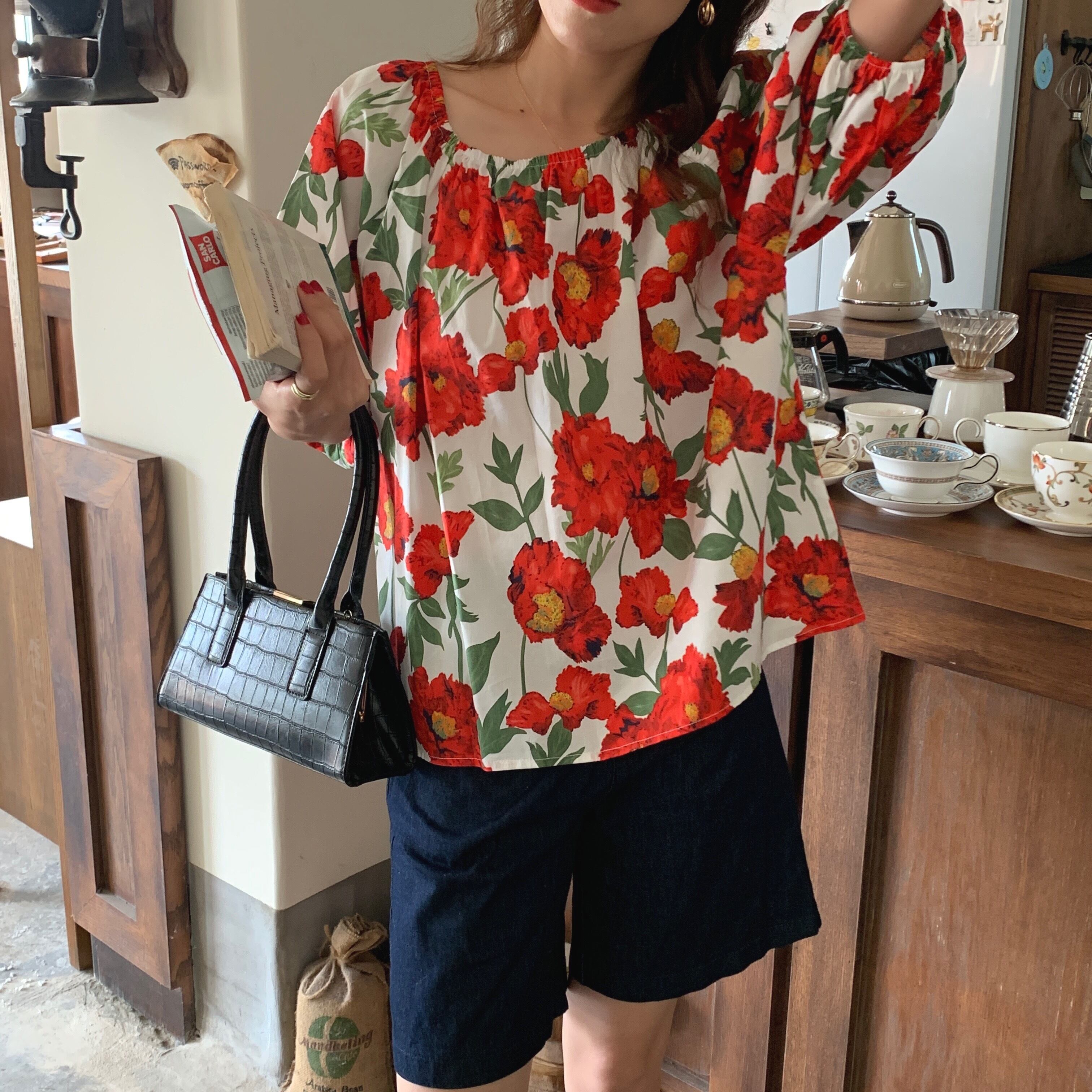 サマースタンダードスタイルスリーブルーズカラーシャツ トップス レディース レトロ 夏物 韓国婦人6883850180