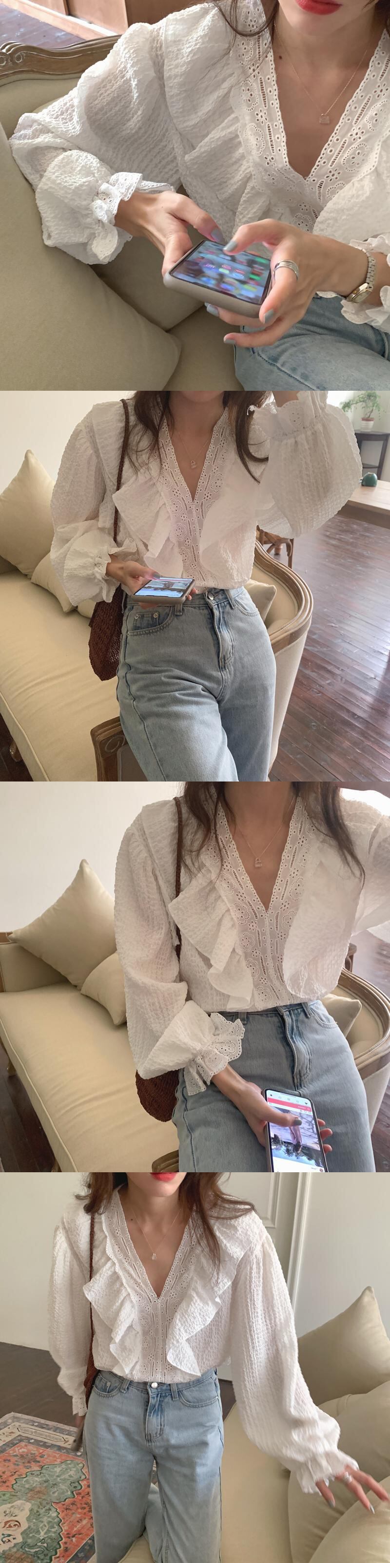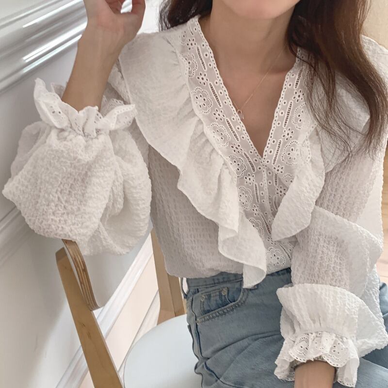 オータムウィンターVネックシャツ トップス レディース ロング 秋物 冬物 ステッチ 韓国婦人85190749639
