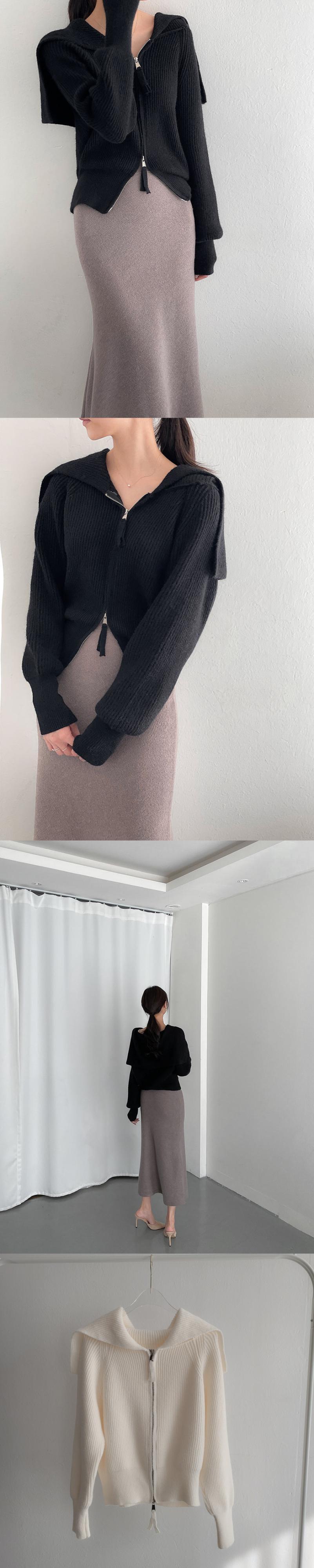 オータムウィンタースタンダードスタイルネイビーカラールーズジッパーセーター カーディガンレディース レトロ 秋物 冬物 韓国婦人99032913523
