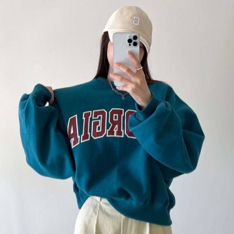 ウィンターカジュアルラウンドネックベルベットプリントルーズセーター レディース 冬物 Oネック 韓国婦人9775546034