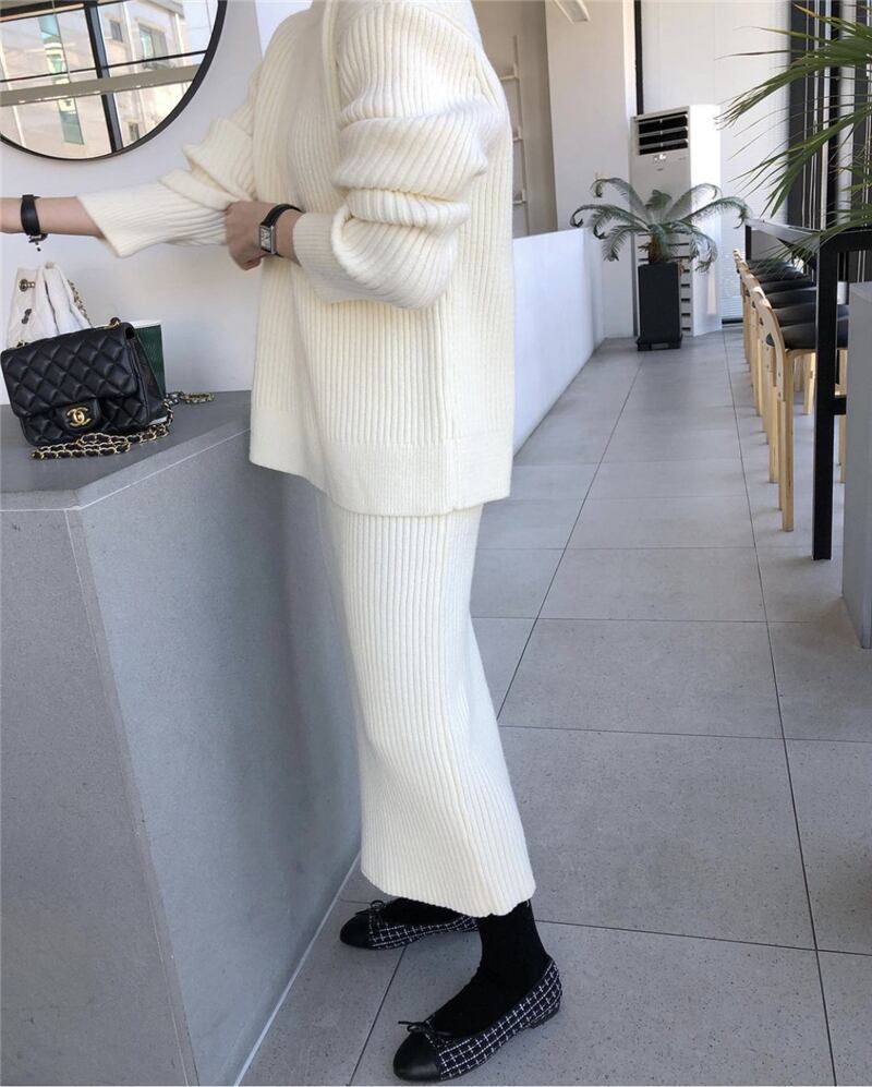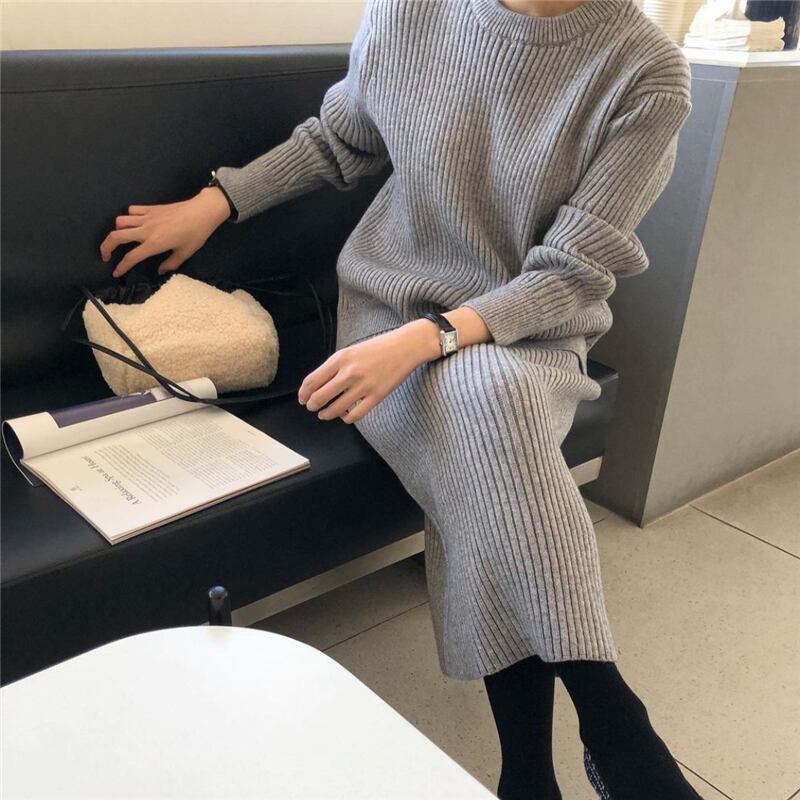 オータムウィンターラウンドネック長袖スリーブニットセーター ハイウェストウェストスカート ロング 秋物 冬物 Oネック 韓国婦人95446222017