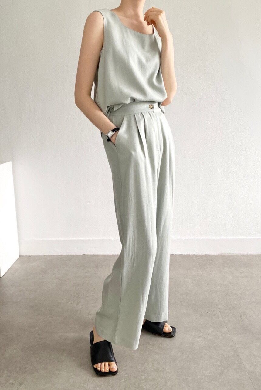 サマーノースリーブハイウェストウェストカジュアルレディース コットン 夏物 韓国婦人43970388668