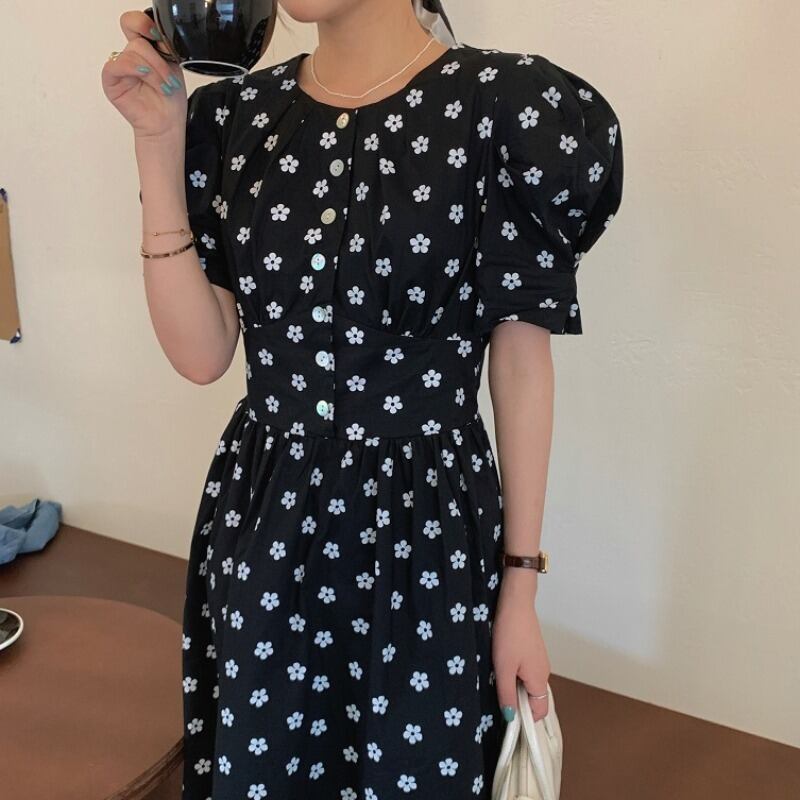 スタイルスタンダードスリーブウェストドレス フローラルスカート サマー レトロ レース 大人ガーリー スウィート キュート カジュアル 夏物 花柄 韓国婦人70339486689