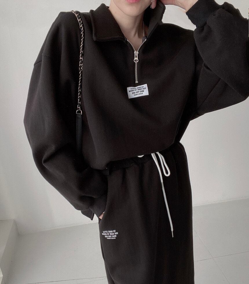 オータムウィンタースタンドカラーカラージッパールーズ長袖スリーブカジュアルギャザースカート レディース ロング コットン 秋物 冬物 韓国婦人97883724655