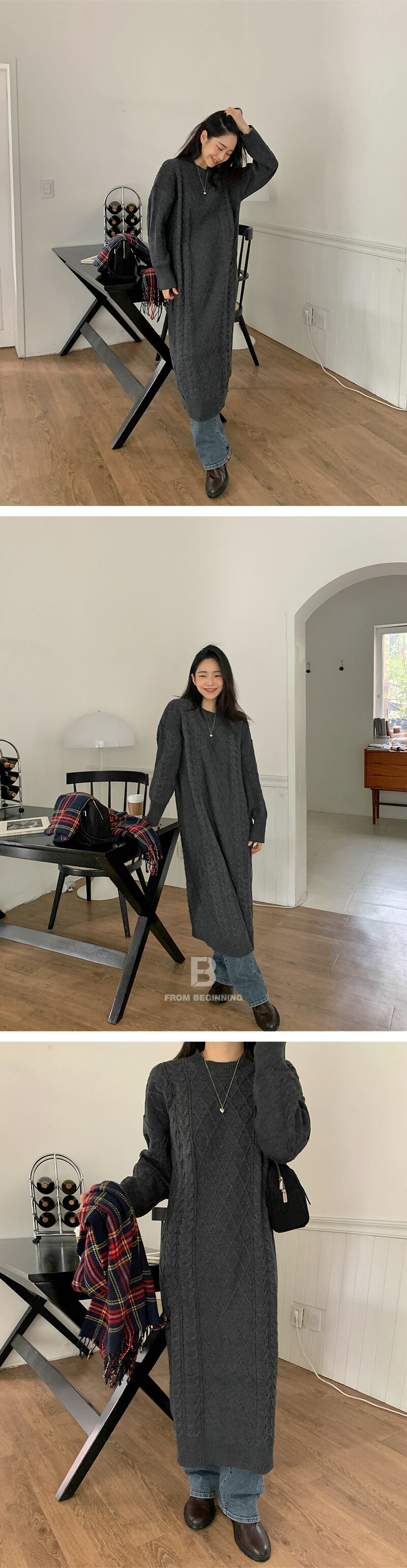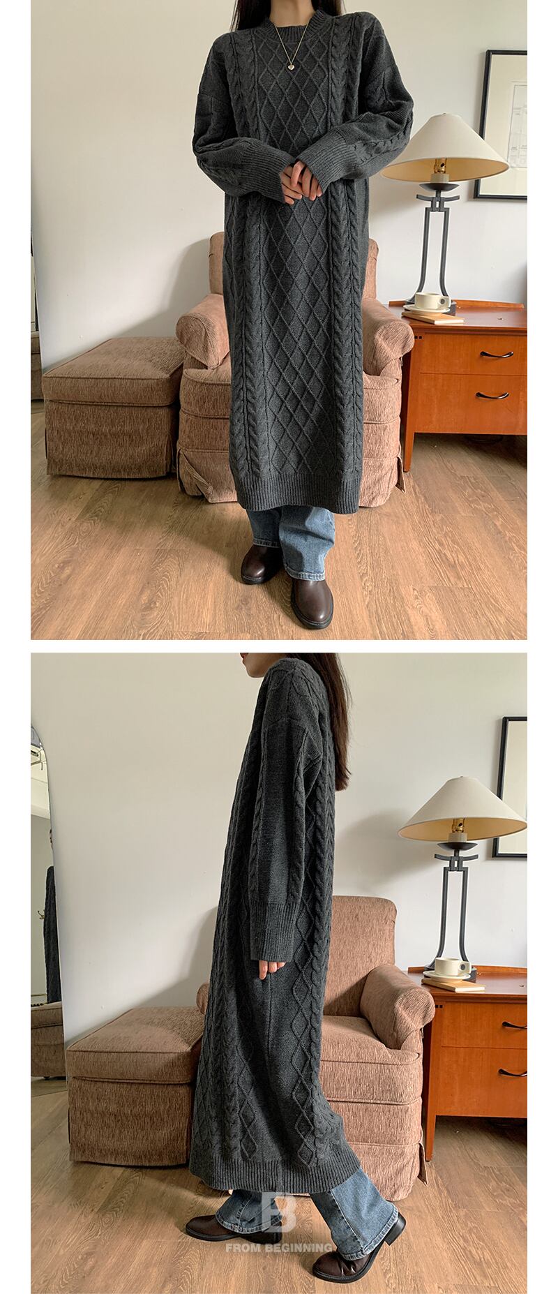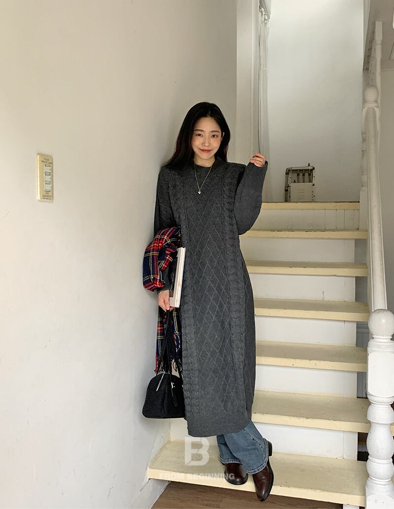 オータムウィンタースタンダードラウンドネックロングニットドレス セーター スカート レトロ 秋物 冬物 Oネック 韓国婦人81135516751