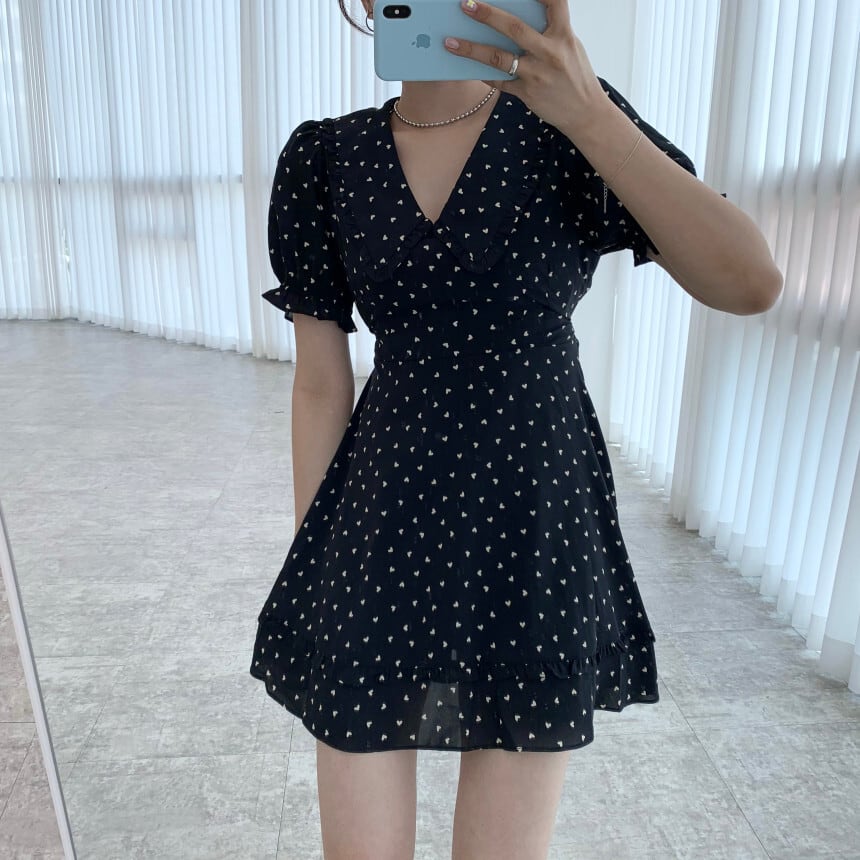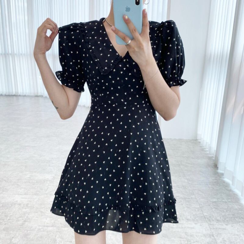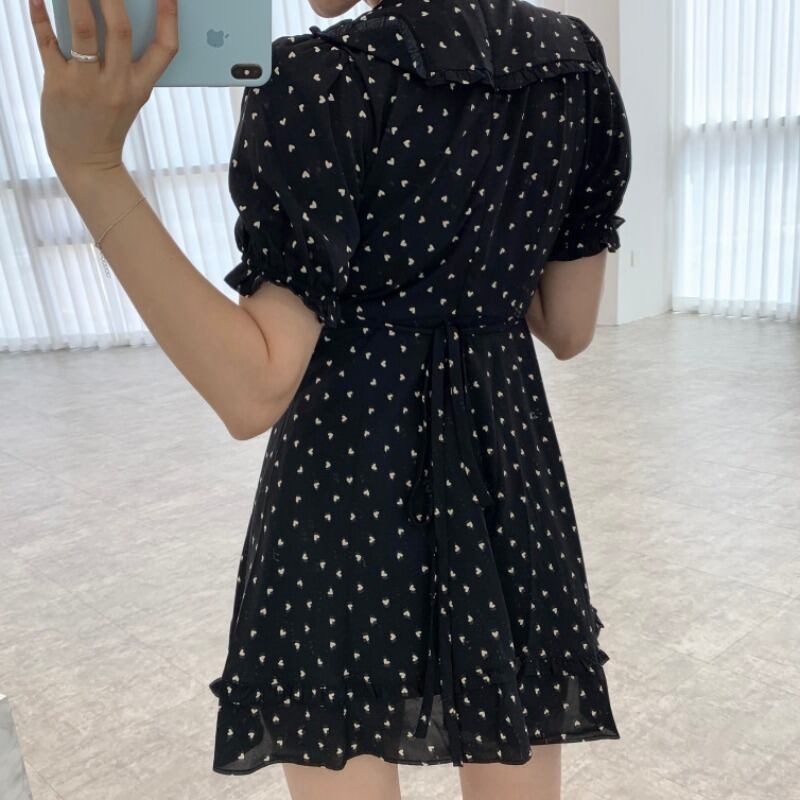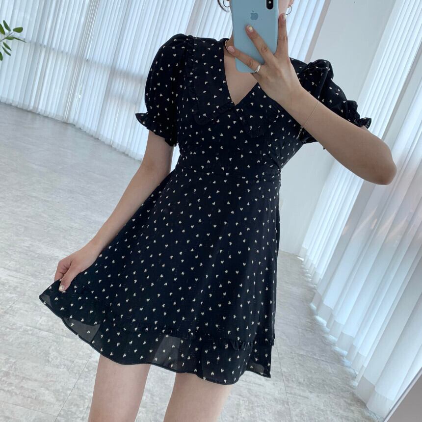 Vネックウェスト薄手ドレス サマースタンダードスリーブシフォンスカート ショート レトロ 大人ガーリー スウィート キュート カジュアル 夏物 韓国婦人48194803362