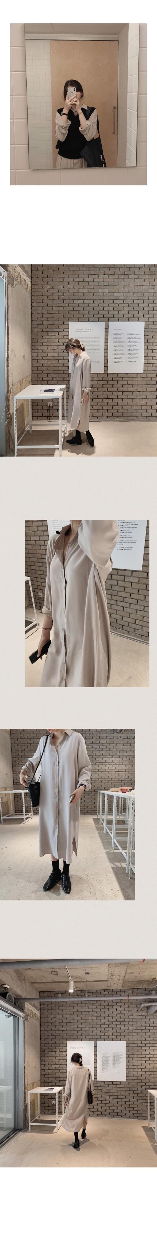 スプリングソリッド カラーシャツ ドレス Vネック 春物 ソリッドカラー 韓国婦人83017208971