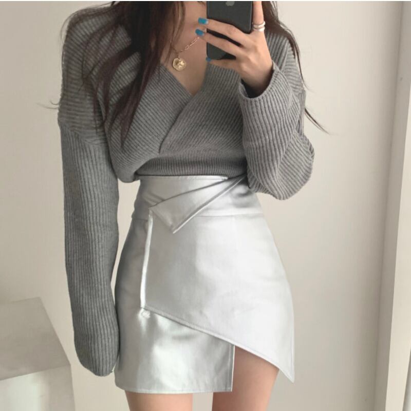 スタンダードスタイルVネックニットセーター スカート レトロ 韓国婦人36612862595