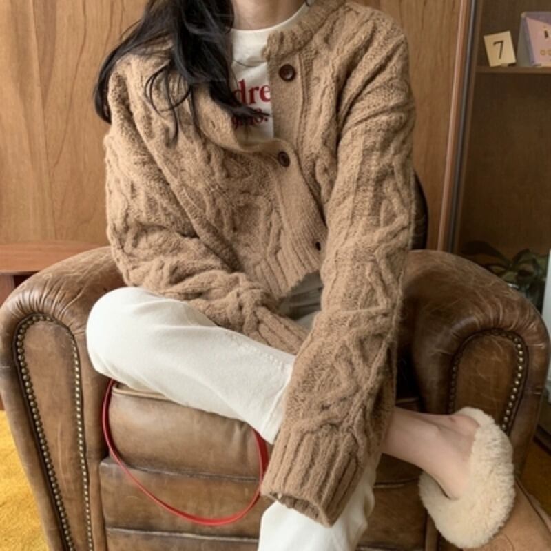オータムウィンタースタンダードジャケット セーター カーディガン ロング レトロ 秋物 冬物 韓国婦人86134106637
