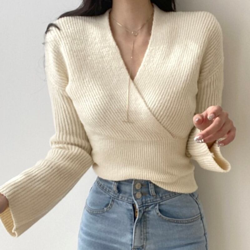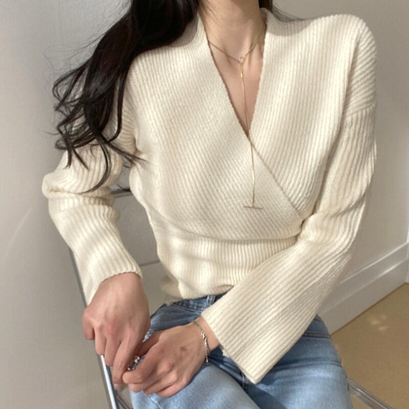 ウィンターウェストクロスVネックニットセーター レディース ロング 冬物 韓国婦人91251153976