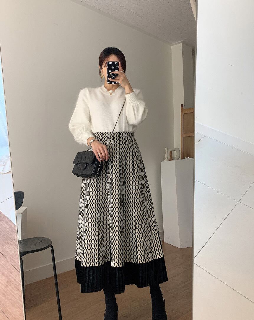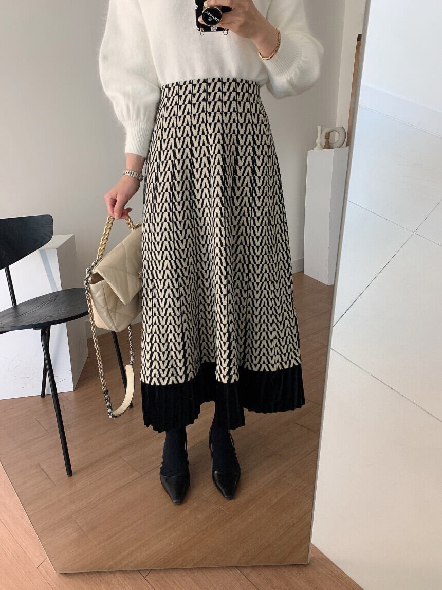オータムウィンタースタイルウールニットセーター スカート レディース 秋物 冬物 ステッチ 韓国婦人6988023917