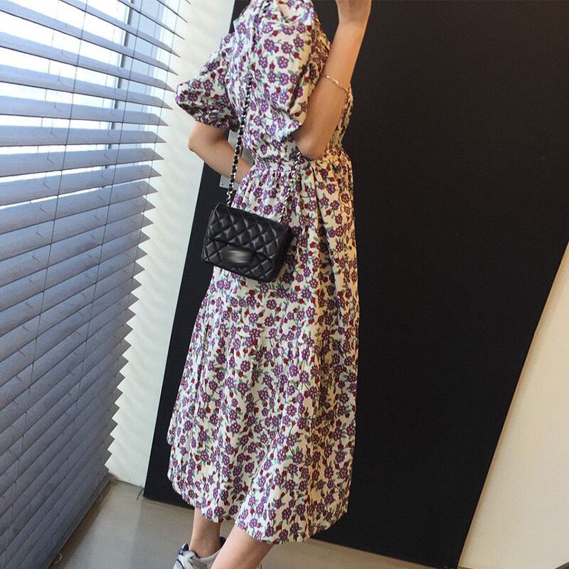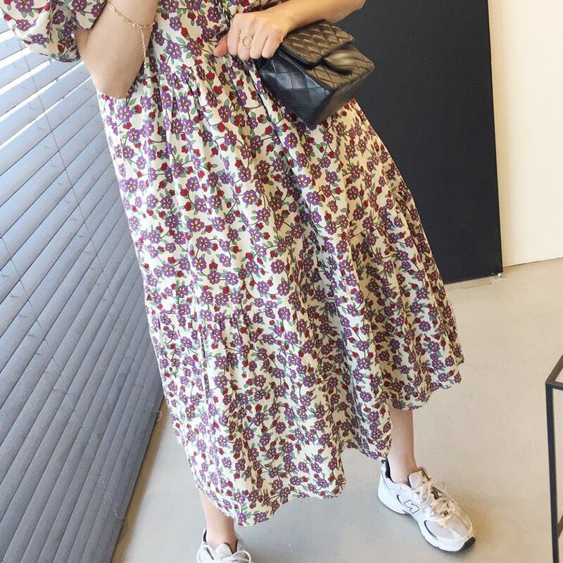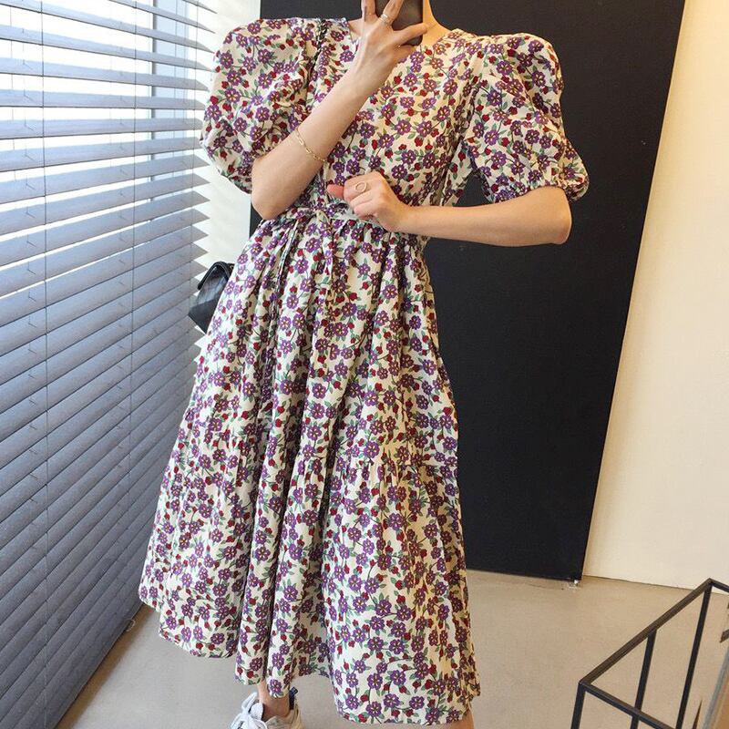 サマースタイルスタンダードフローラルスリーブドレス ルーズ薄手スカート レトロ 夏物 花柄 韓国婦人49127904749