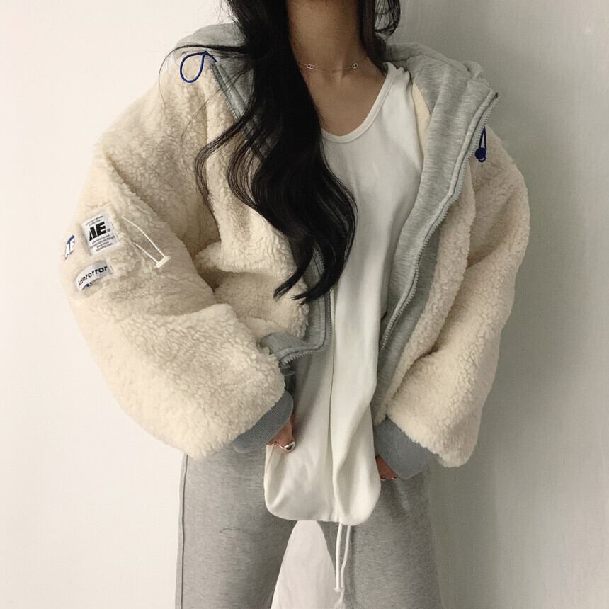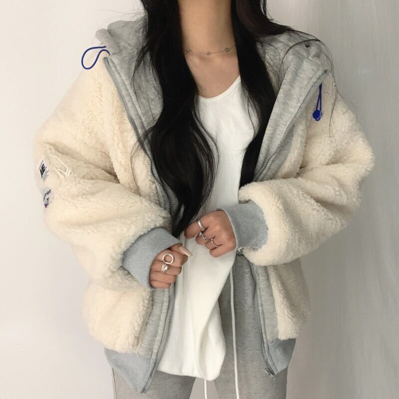 オータムウィンタールーズフードウールコート セーター カーディガンレディース 秋物 冬物 ステッチ 韓国婦人78124195228