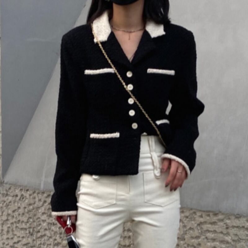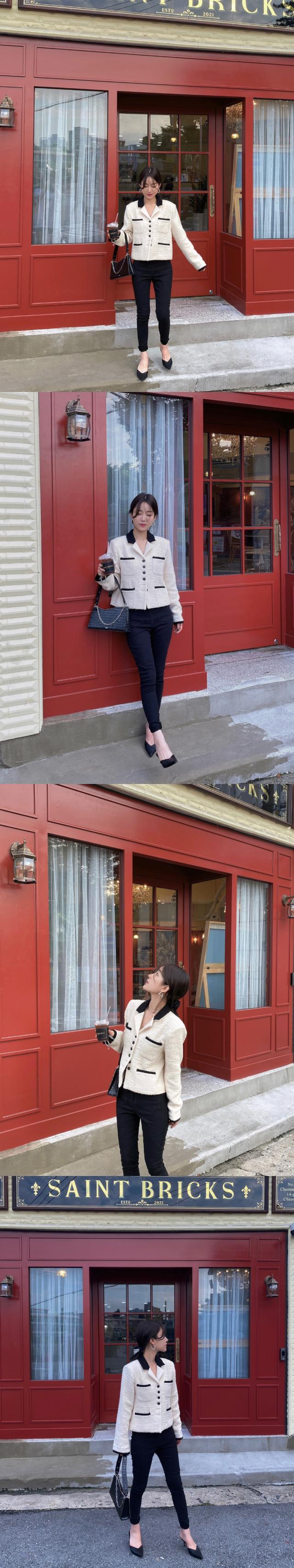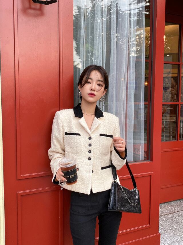 オータムウィンターカラーショートツィードジャケット レディース 秋物 冬物 韓国婦人64159573604
