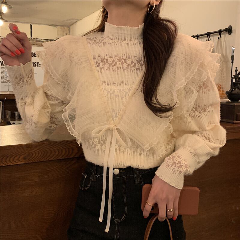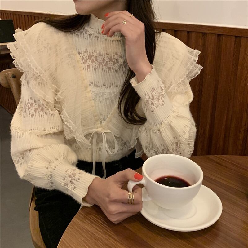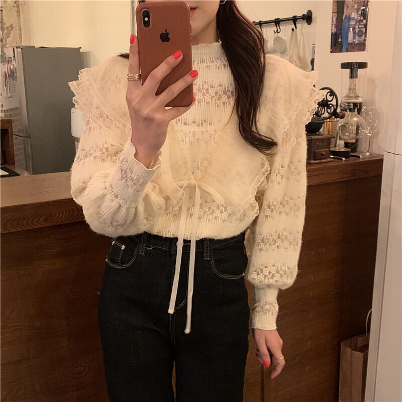 オータムウィンターカラーレースシャツ ブラウス 秋物 冬物 ステッチ 韓国婦人4775626655