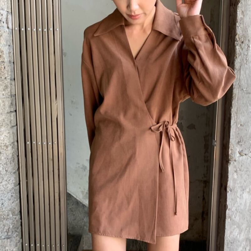 オータム薄手Vネックシャツ スカート ドレス レディース ロング 秋物 韓国婦人47879010760