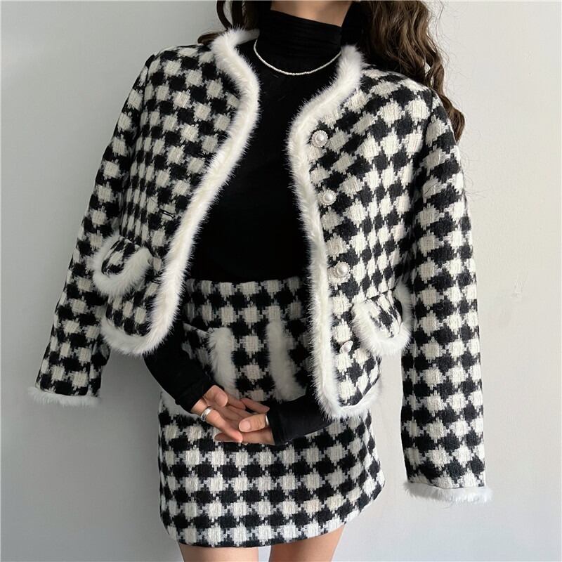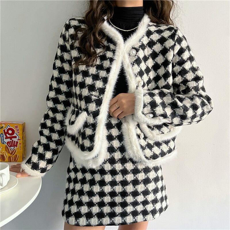 オータムウィンターベルベットジャケット スリムスカート ツィードレディース 秋物 冬物 韓国婦人94943656341