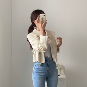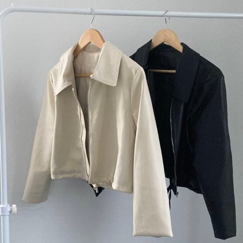 オータムジッパーカジュアルルーズギャザーショートレザージャケット レディース 秋物 韓国婦人91514322665