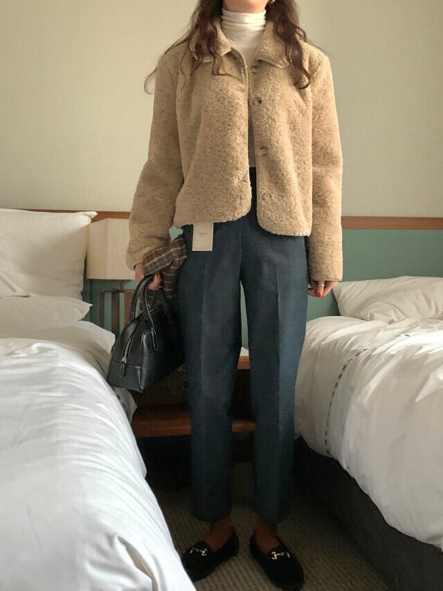 ウィンタースタンダードルーズショートコート レトロ 冬物 韓国婦人3414248073