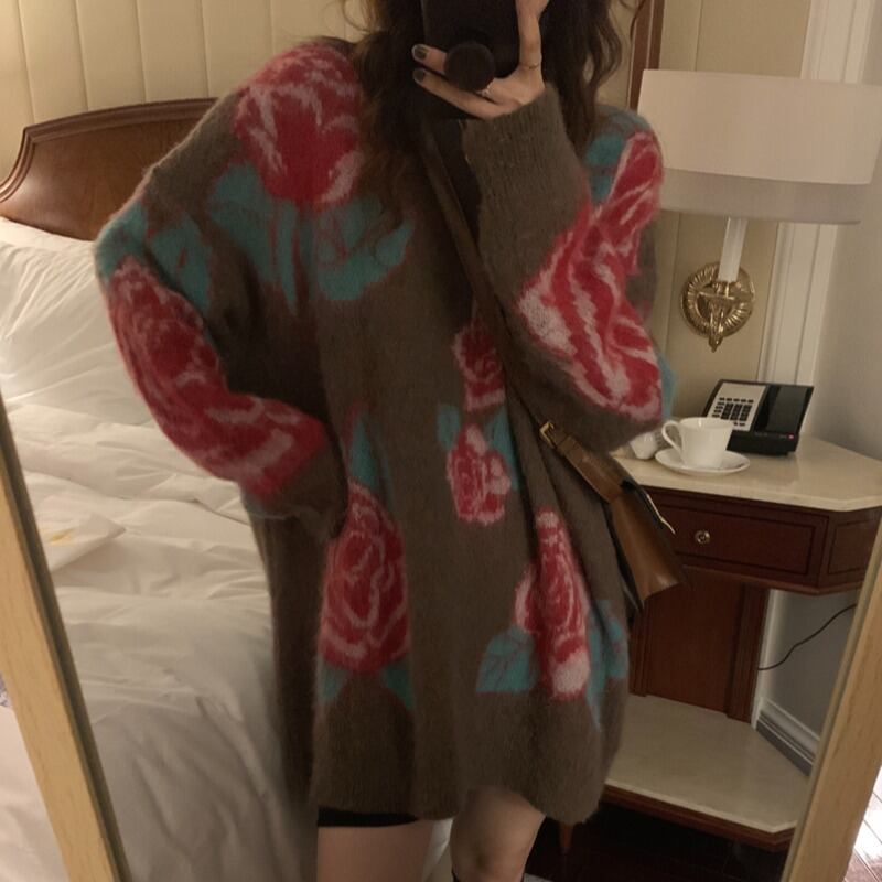 オータムウィンタースタンダードジャカードルーズスタイルプルオーバー セーター ニットトップス レディース レトロ 秋物 冬物 韓国婦人32587886463