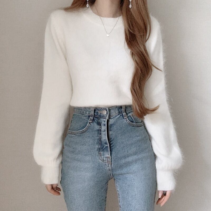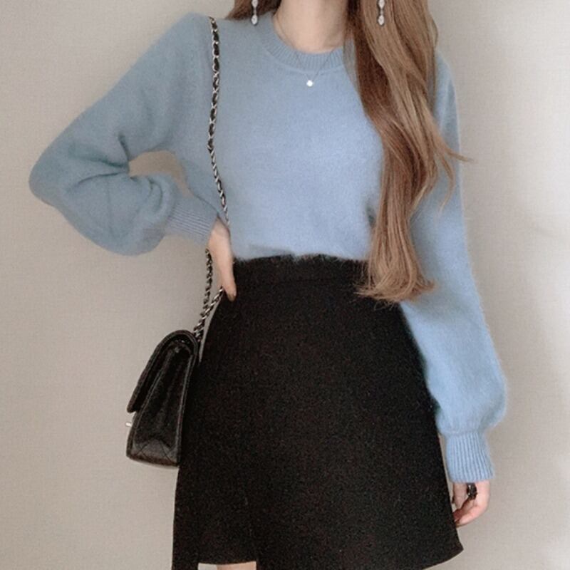 オータムラウンドネックプルオーバー ルーズニットセーター レディース ロング 秋物 Oネック 韓国婦人87495141426