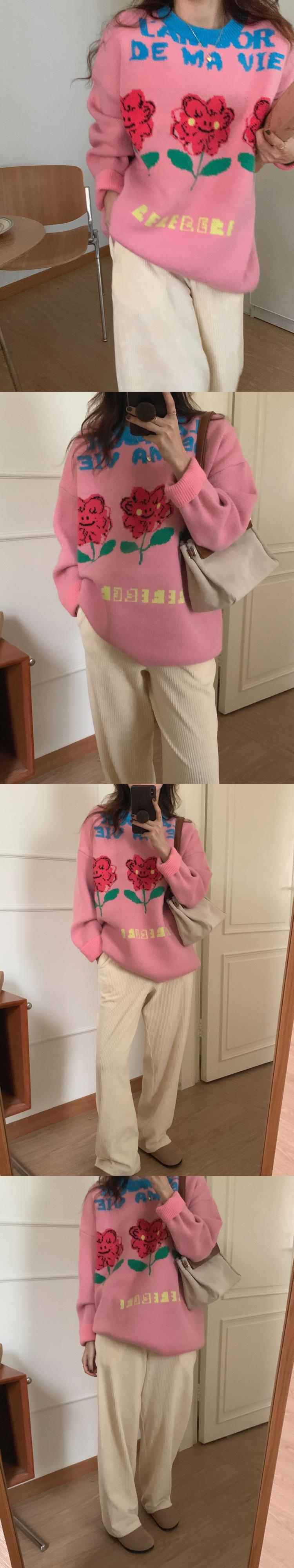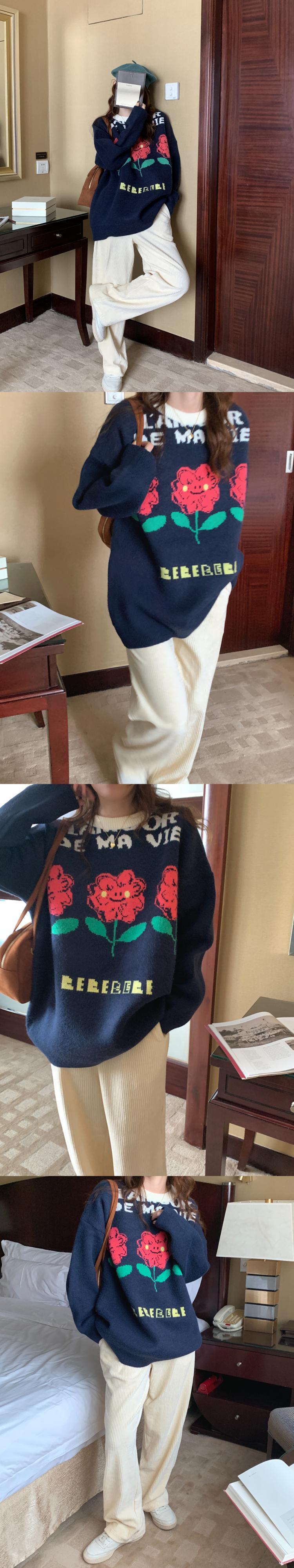オータムスタンダードスタイルルーズFlowerデザイン セーター ベルベットパンツ レディース レトロ 秋物 フラワーデザイン 韓国婦人26699873611